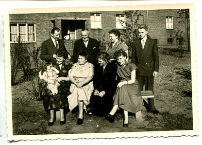 Großvater Gustav hinten stehend zwischen meinen Eltern. Sein Enkel ist das müde Kind auf unbekanntem Schoß.