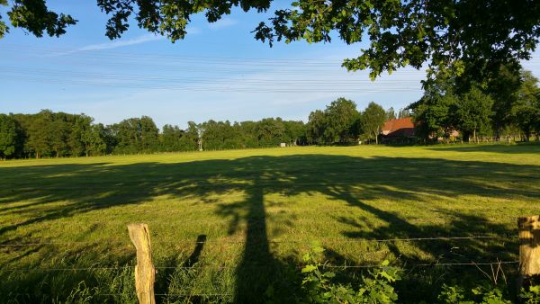 Langer Schatten einer Baumkrone im Licht der untergehenden Sommersonne